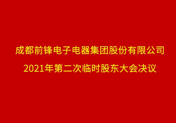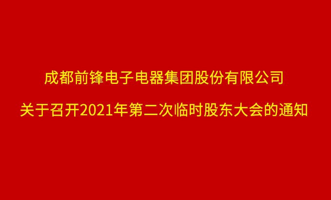 成都前鋒電子電器集團股份有限公司關(guān)于召開2021年第二次臨時股東大會的通知 成都前鋒電子電器集團股份有限公司(以下簡稱公司)第七屆董