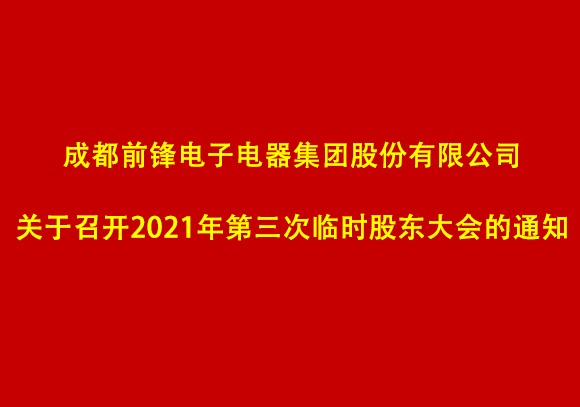 成都前鋒電子電器集團股份有限公司關(guān)于2021年第三次臨時股東大會的參會通知