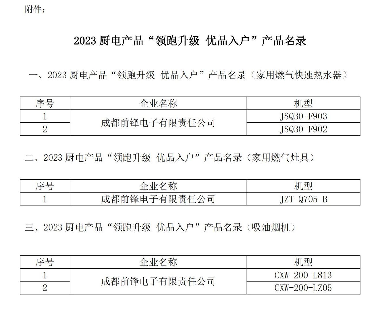國貨優品 就是信得過的產品︱前鋒廚電入選“領跑升級 優品入戶”產品名錄
