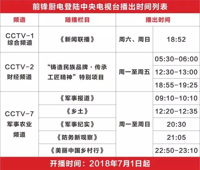 前鋒廚電正式開(kāi)啟霸屏模式,CCTV-1、CCTV-2、CCTV-7盛大熱播