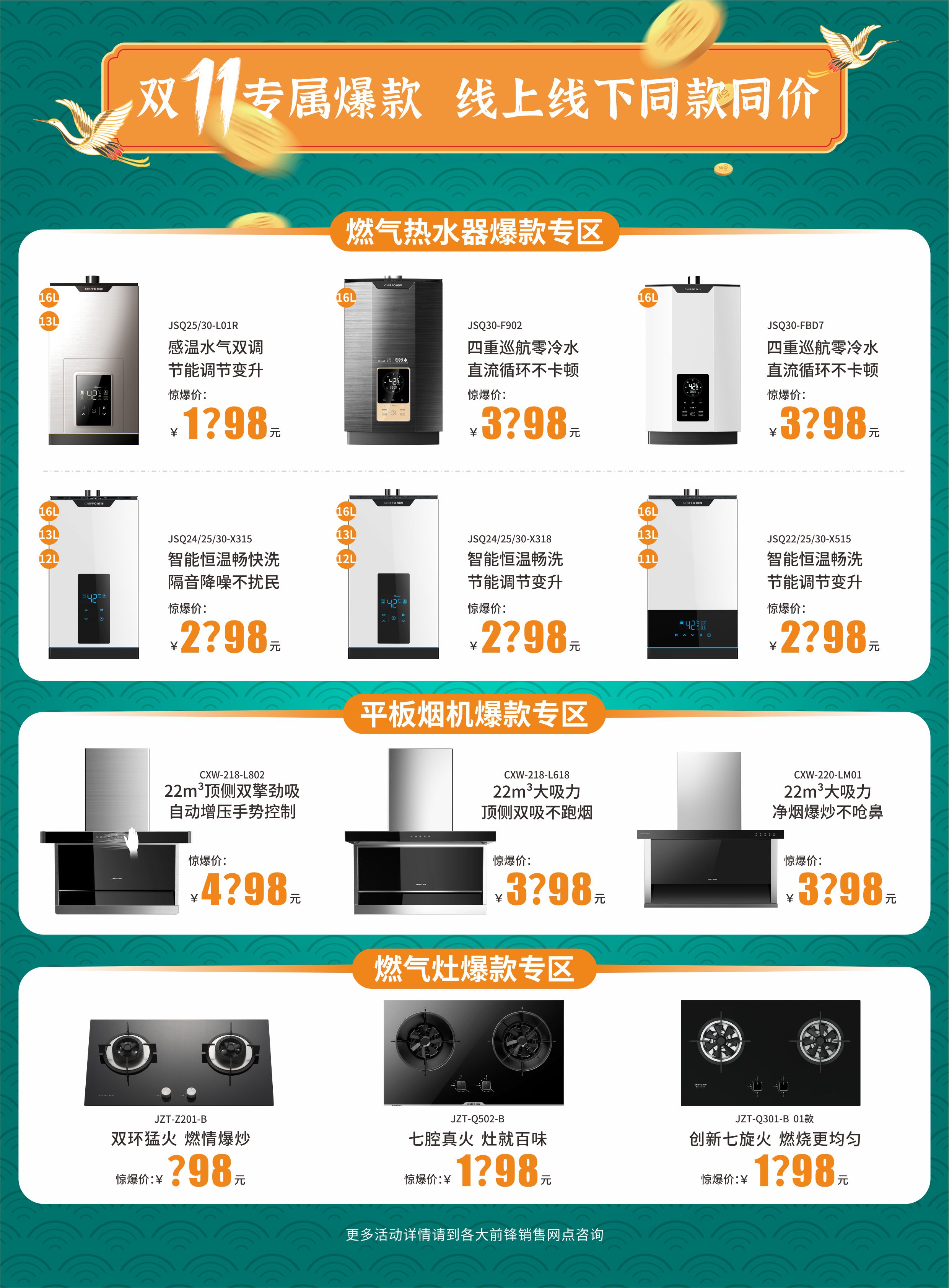 為了讓全國用戶感受到此次活動的最大誠意,品牌方臻選了十余款專屬爆款產品,人氣零冷水、超值煙灶套,優中選優,惠上加惠!力求給全國用戶最大、最驚喜的優惠!